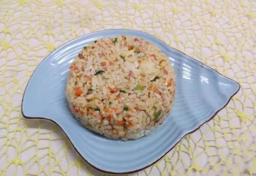 - 做法:胡蘿卜切?。徊げ饲兴?;雞蛋炒散。另起鍋爆香蔥末,加入米飯、胡蘿卜、菠菜、雞蛋翻炒調(diào)味即可。